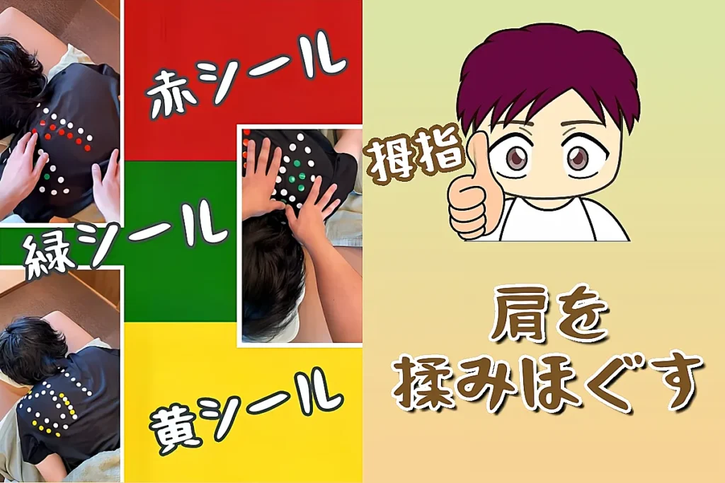 緑シールが貼ってある場所は、肩甲骨の内側と上です。