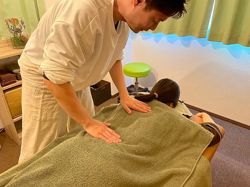 さらに、いきなり触れるのではなく「これから施術を始めますよ~」と挨拶代わりにもなります。こうすることで、身体の強張りを取り除くことができます。