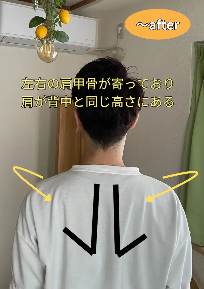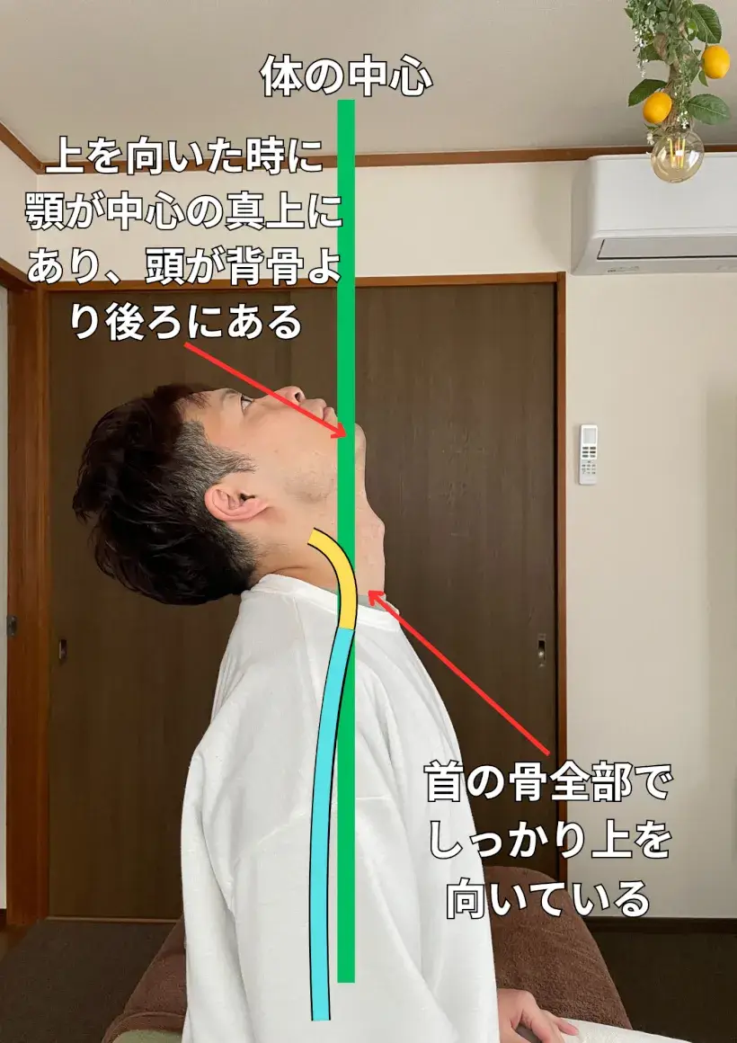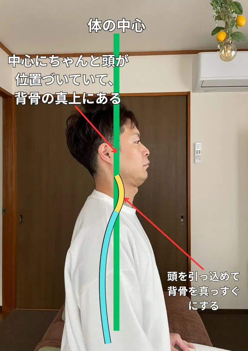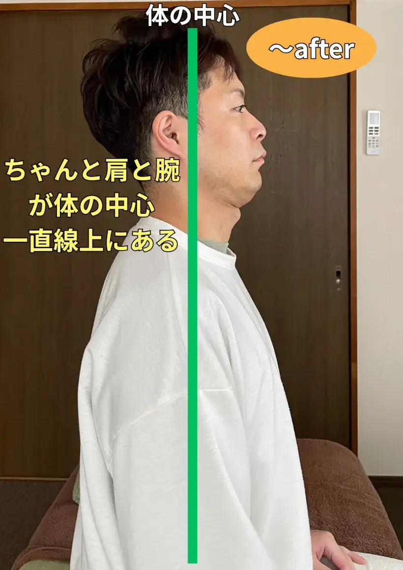 猫背の方は特に首と肩の位置が大切です。