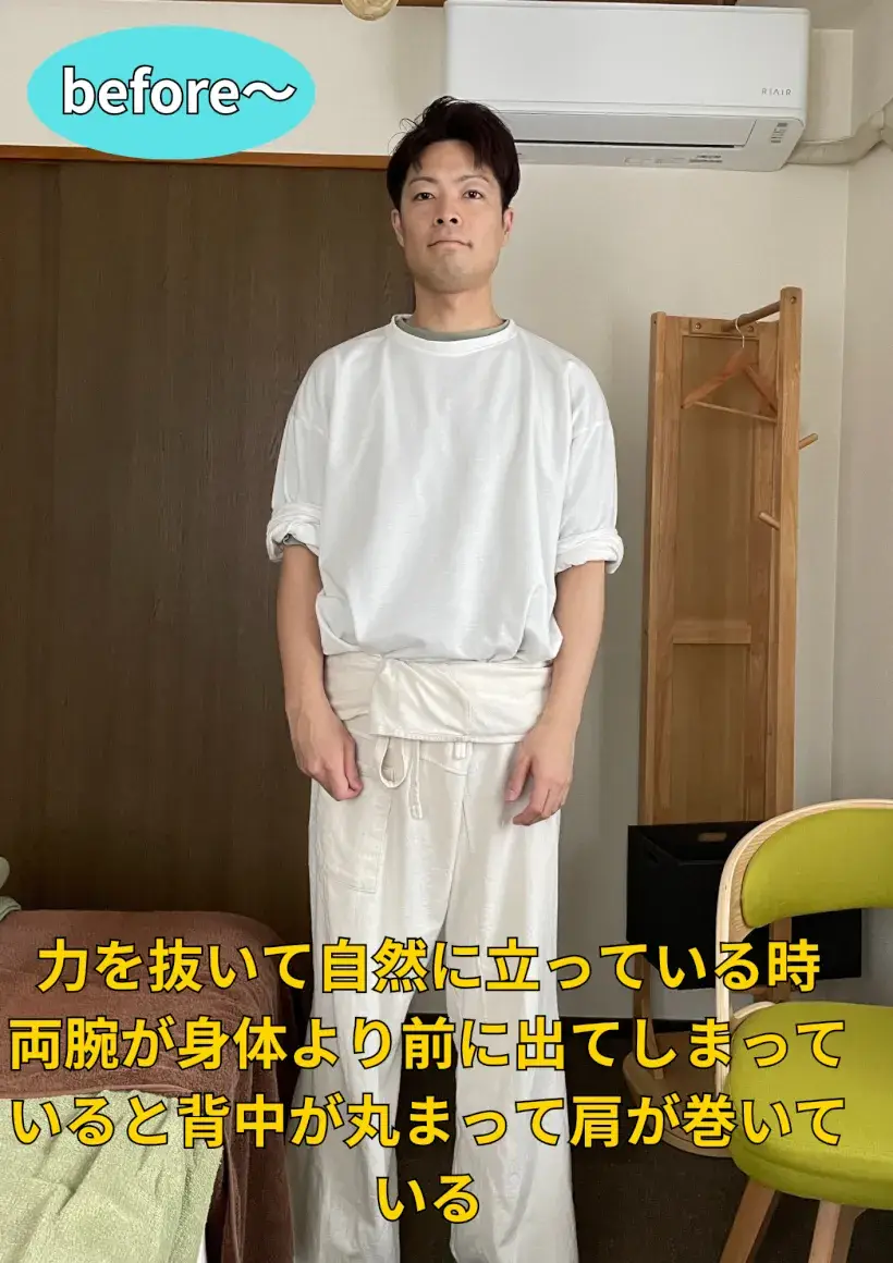 私自身、お恥ずかしながらプライベートでの姿勢が悪く、猫背と巻き肩が強いです。