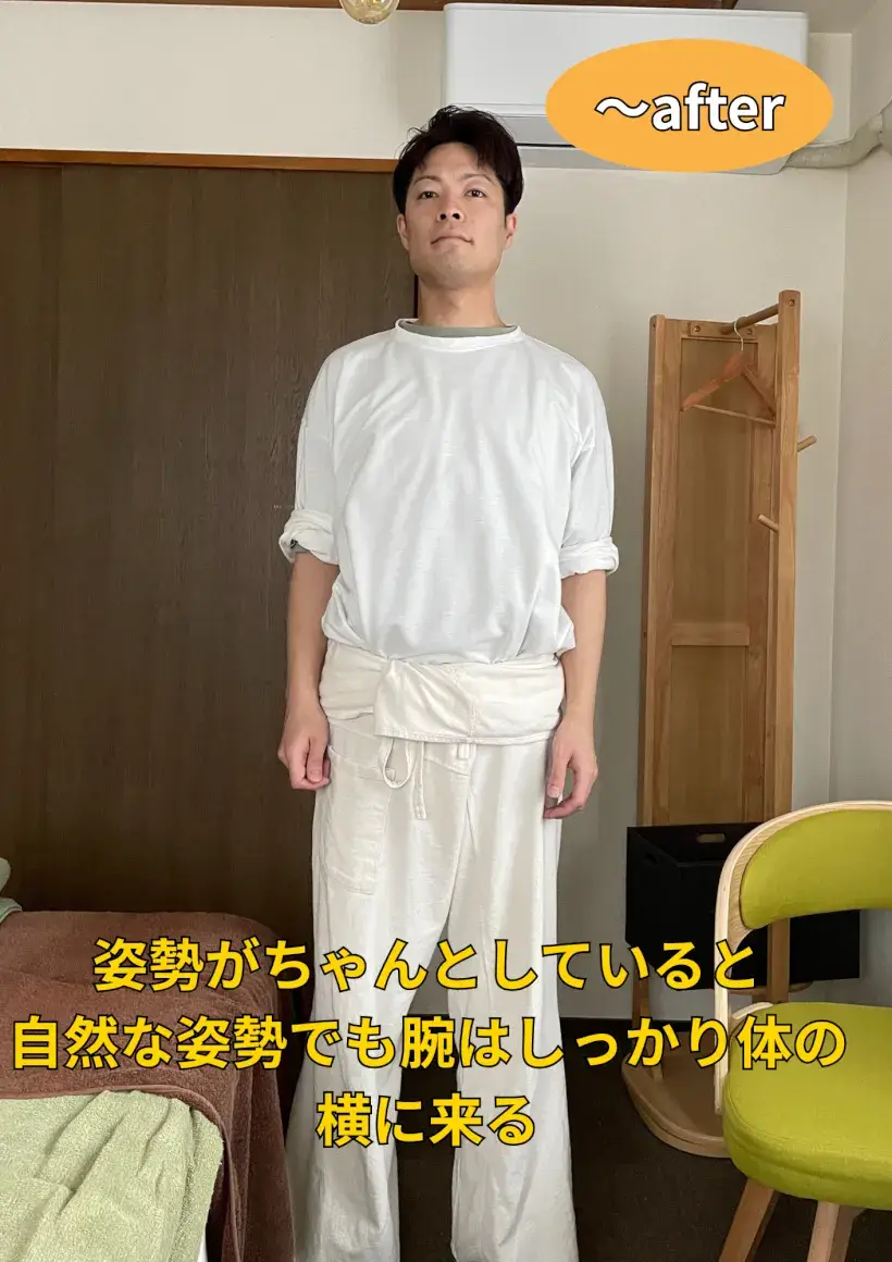 初めのうちは身体が硬く、上を向く、腕を上げるだけでも痛みを感じたりしましたが、続けていくうちに動くようになり、むしろ痛気持ちいい感覚にまでなりました。続けて約半年後、久々に会った友達から「身長伸びた?」なんて言われました!