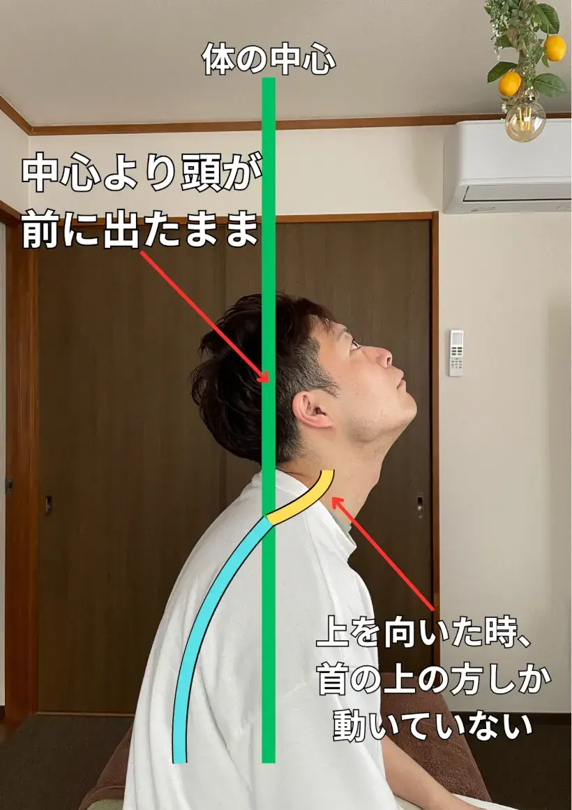 肩は首と連動して一緒に動いてしまうため、どちらかが前に歪んでしまうともう片方も一緒に前に歪んでしまいます。