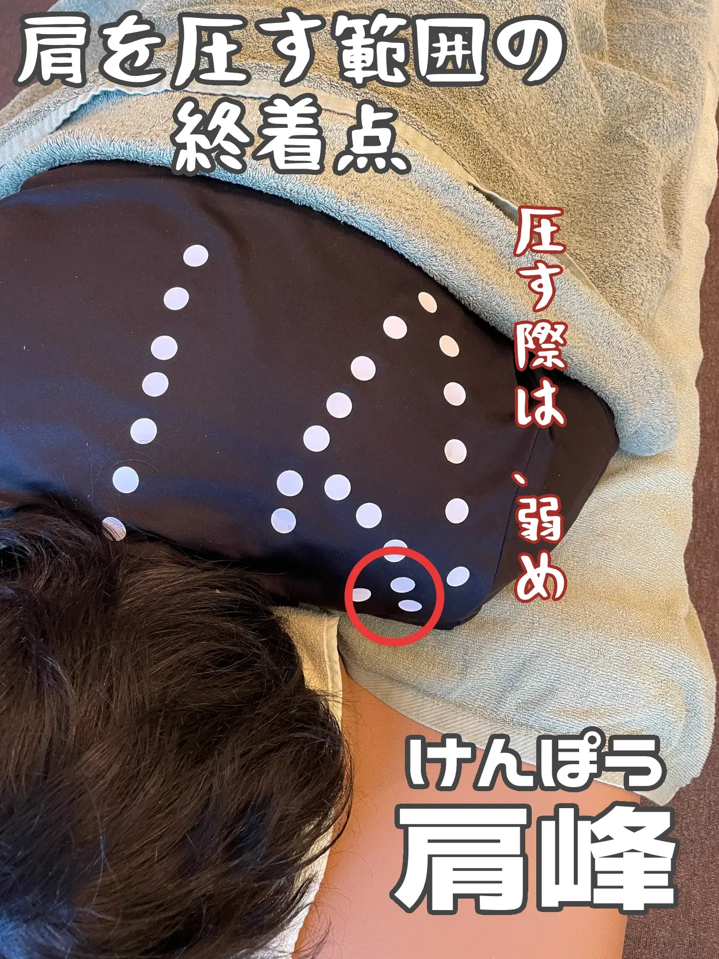 手根で肩を圧す時、手のひらに肩甲骨などの骨感を感じると思いますが、手根圧(手首近く)で圧すので狙って骨を圧さない限りは乗っちゃっても大丈夫です。不安な方は受け手の方に加減を確認してください。