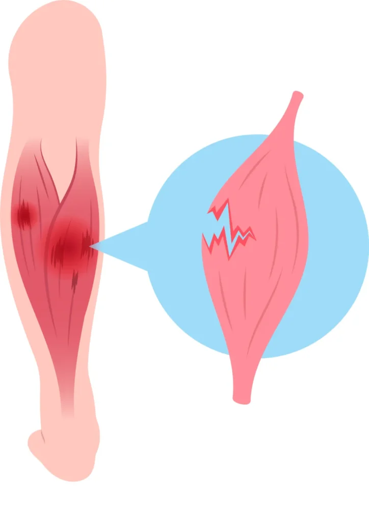 これは、強い刺激や無理な動きをされて、筋肉の繊維が傷ついてしまった状態になってしまっています。