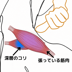 強く圧されても効かない場合は、圧されている箇所が根本的な原因じゃなく、他のコリの要因で硬くなってしまっているのかもしれません。