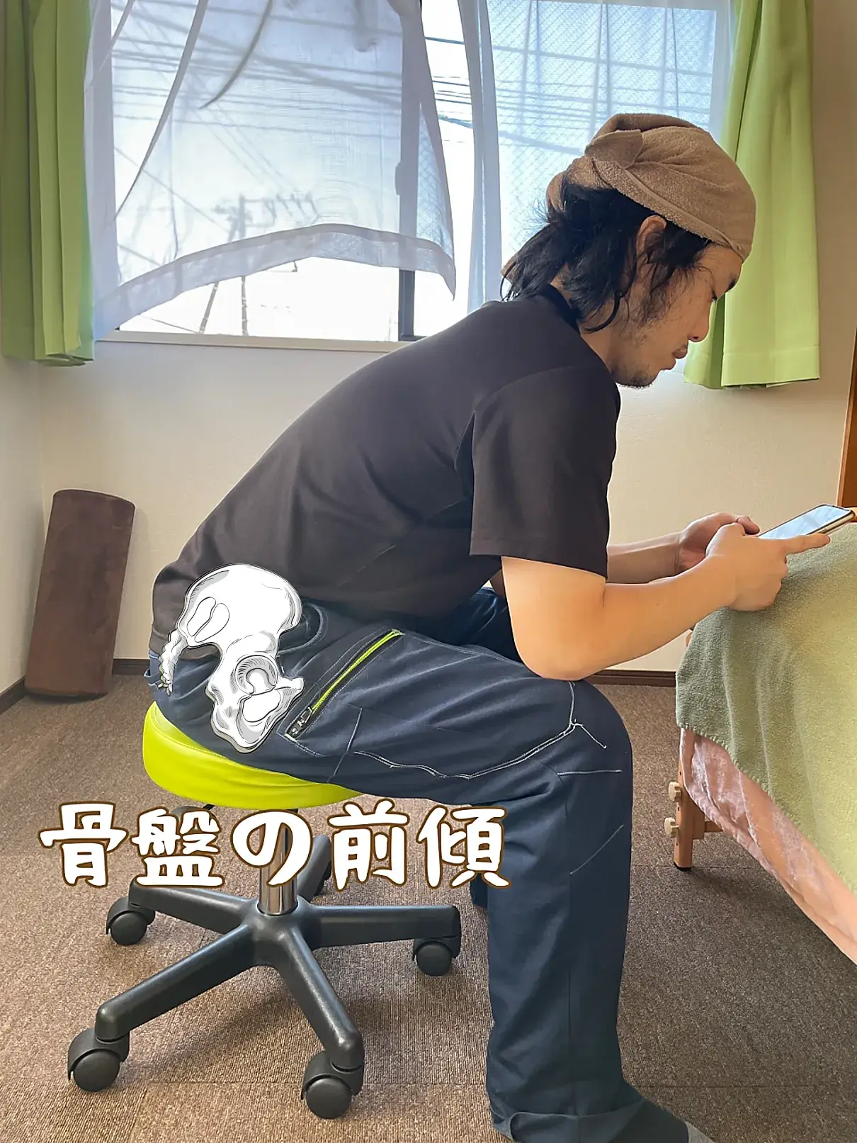 大体の方が、骨盤を立てず、後ろに傾いて(後傾)座っている方がほとんどです。